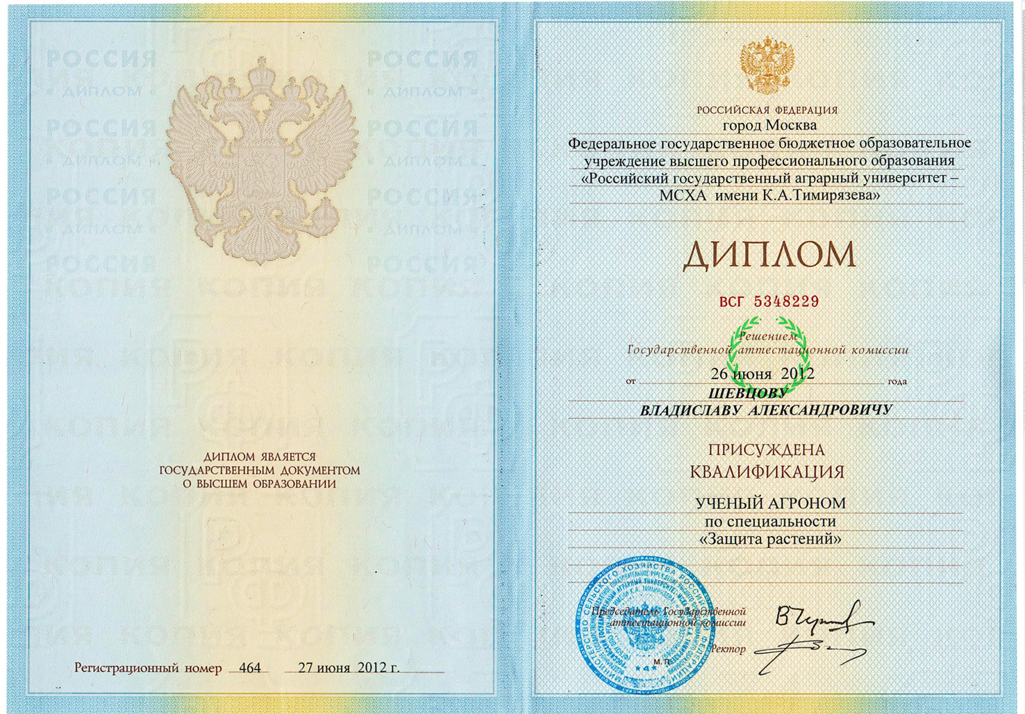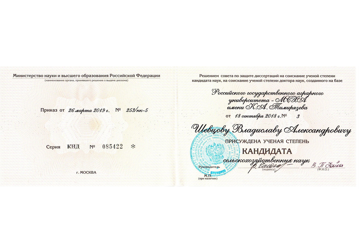 Диплом кандидата сельскохозяйственных наук